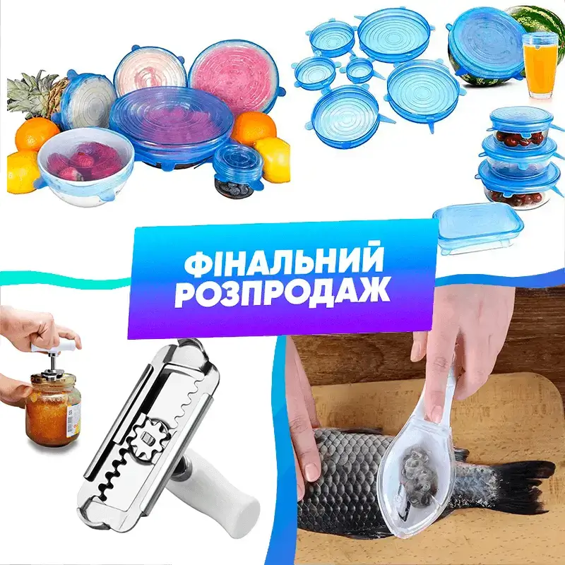 Силіконові кришки + рибочистка + відкривачка для банок